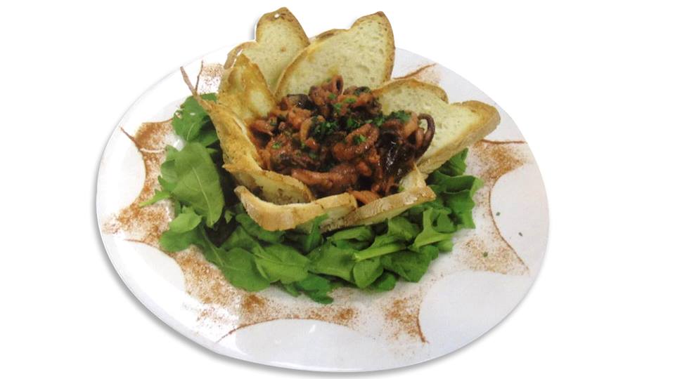 Tritare cipolla, aglio e peperoncino, mettere il trito in un tegame con l’olio e fatelo rosolare, assaporate ed aggiungete i moscardini, precedentemente puliti, lavati e tagliati a metà, assaportate leggermente e lasciateli cuocere; aggiungete la passata di pomodoro e portate ad ebollizione, lasciate cuocere aggiungendo a cottura ultimata i capperi.