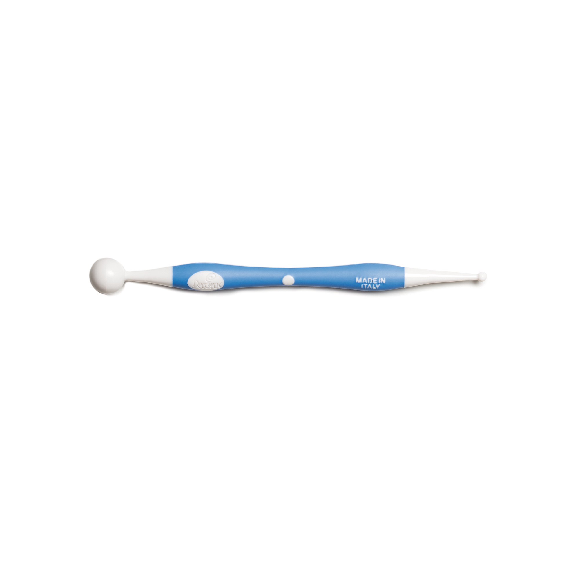Attrezzo doppia punta ‘sfera’ diam mm 12,2 – 9 per modelling cake design art 9260232 DECORA: ogni estermità ha punte diverse, quindi ha doppia funzione in un unico strumento. Il manico ergonomico e l’impugnatura in gomma ‘soft’ antiscivolo ne facilitano l’utilizzo.